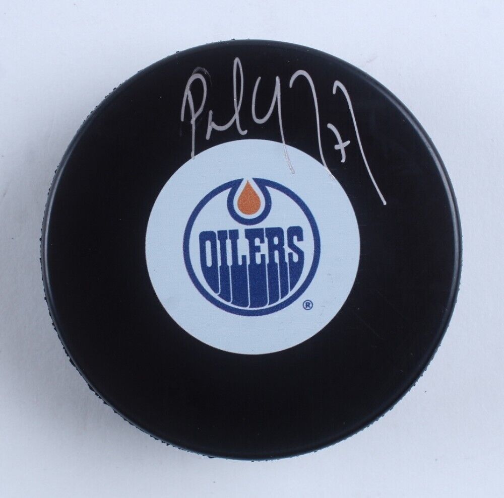 Edmonton Oilers logo hockey puck has been hand-signed by Paul Coffey (HOF).The lot / autograph(s) includes an official COJO Sports Collectibles Inc. hologram and matching COA for authenticity purposes.Authentication: COJO COA