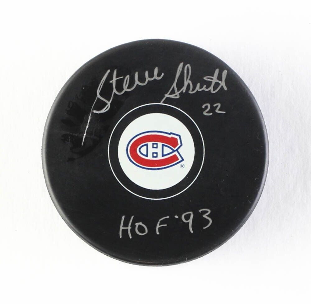 Montreal Canadiens Logo Hockey Puck. Hand-signed and inscribed in silver paint pen by Steve Shutt (HOF). The lot / autograph(s) includes an official COJO Sports Collectibles Inc. hologram and matching COA for authenticity purposes.Authentication: COJO COA