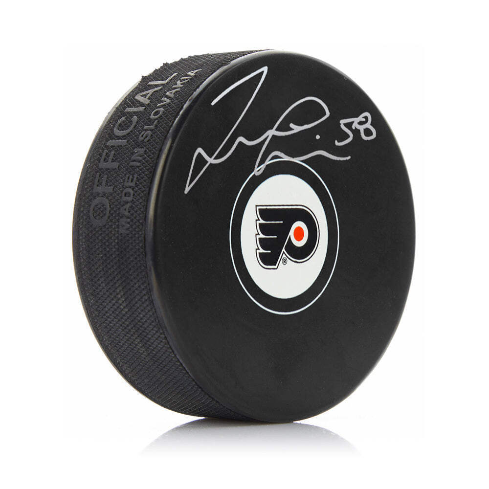 Taylor Leier Autographed Philadelphia Flyers Hockey Puck Official NHL logo puck with signature from Flyers future star Taylor Leier - authenticated by Dynasty Sports Taylor Leier was drafted by the Philadelphia Flyers in 2012, and the team has high hopes that he will be a future star. All autographed memorabilia is accompanied by a certificate of authenticity and a matching hologram. Hand-Signed by Philadelphia Flyers future star Taylor Leier Signature is in sharp silver on the puck Authenticated with serially numbered hologram and certificate Official NHL puck Custom framing options available - contact our storefront for information regarding customizing this in the frame and matting colors of your choice! Add a nameplate and team logo medallions! Please allow additional time for framing and shipping.