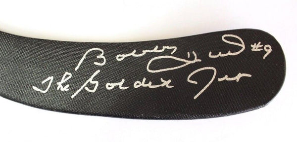 Full-Size hockey stick has been hand-signed in silver paint pen by Bobby Hull (Blackhawks HOF). The lot / autograph(s) includes an official James Spence Authentication (JSA) hologram and matching COA for authenticity purposes. The signing of this item was witnessed by JSA.Authentication: JSA COA Due to the size of this stick, shipping will be $25.