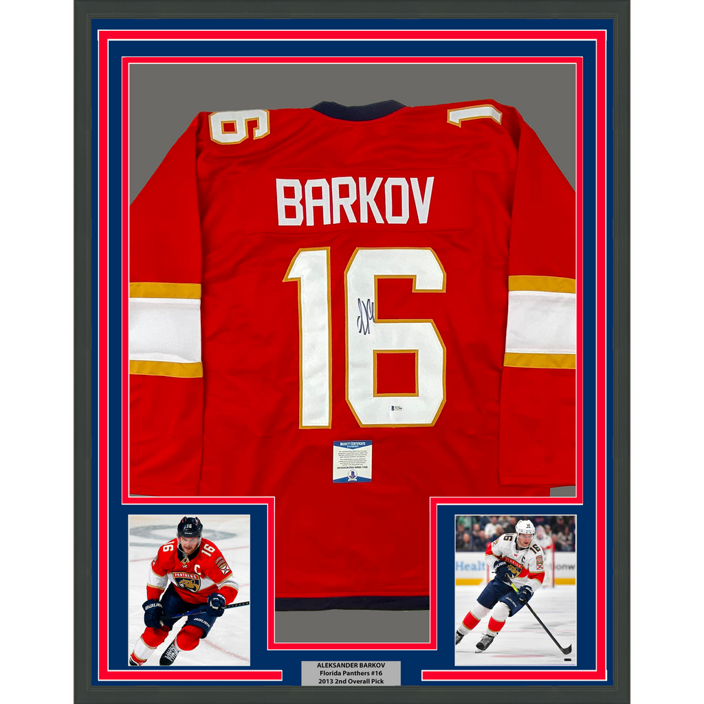 Framed Autographed/Signed Aleksander Barkov 33x42 Florida Red Jersey BAS COA The item is professionally framed & matted with two 8x10 photos, measures 33"x42" and is ready to be hung in your man cave! NOTE: COA card will be mounted on the back of the frame, not inside it on top of the jersey as seen in the picture.