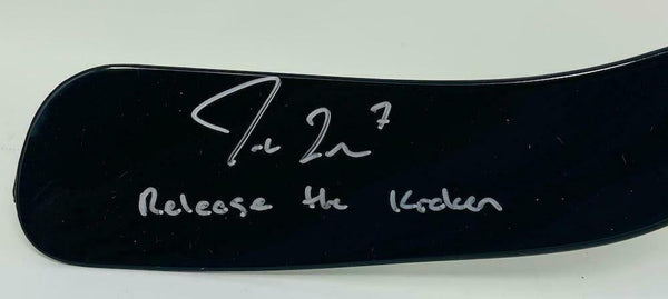 This Seattle Kraken mini hockey stick has been personally hand-signed by Jordan Eberle with the inscription "Release The Kraken." It is officially licensed by the National Hockey League and comes with an individually numbered, tamper-evident hologram from Fanatics Authentic. To ensure authenticity, the hologram can be reviewed online. This process helps to ensure that the product purchased is authentic and eliminates any possibility of duplication or fraud.