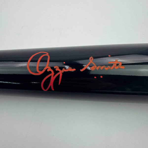 Autographed/Signed Ozzie Smith Black Rawlings Pro Baseball Bat Fanatics COA Authentic and comes with third party authentication.