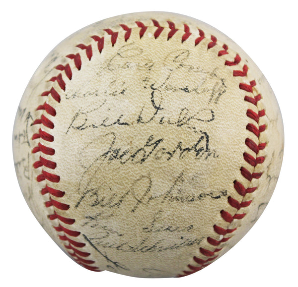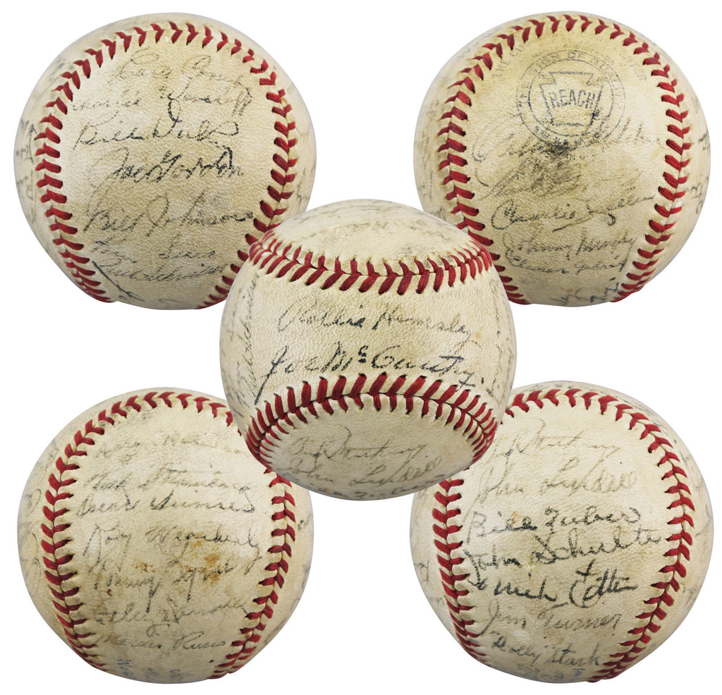 This Autographed Oal Baseball has been Personally Signed by Notable Signatures Include: (HOFers) Bill Dickey, Joe Gordon, Joe McCarthy & Earle Combs. (Notables) Charlie Keller, Billy Johnson, Hank Borowy, Nick Etten, Bud Metheny, Roy Weatherly, Rollie Hemsley, Johnny Murphy, Atley Donald, Bill Zuber & Eleanor Gehrig of the New York Yankees. This item is 100% Authentic to include a Certificate of Authenticity (COA) / hologram by Beckett Authentication Services. The authenticity can be verified on Beckett Authentication Services website.
