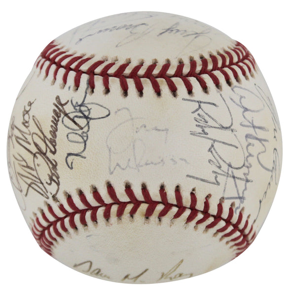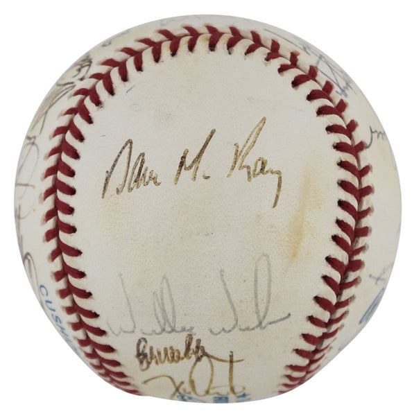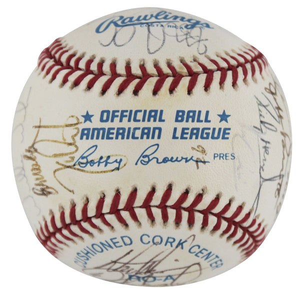 This Autographed Bobby Brown Oal Baseball has been Personally Signed by Notable Signatures Include: Mark McGwire, Tony La Russa, Jose Canseco, Goose Gossage, Dennis Eckersley, Willie Wilson, Dave McKay, Rickey Henderson, Jeff Parrett, Kevin Campbell, Carney Lansford, Terry Steinbach, Jerry Browne, Jim Corsi, Mike Moore, Randy Ready, Eric Fox, Mike Bordick, Art Kusnyer, Vince Horsman, Rick Honeycutt, Jeff Russell, Kelly Downs, Bob Welch, Walt Weiss, Dave Stewart, Jamie Quirk & 1 more. of the Oakland Athletics. This item is 100% Authentic to include a Certificate of Authenticity (COA) / hologram by Beckett Authentication Services. The authenticity can be verified on Beckett Authentication Services website.