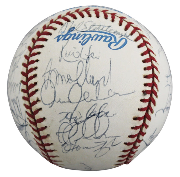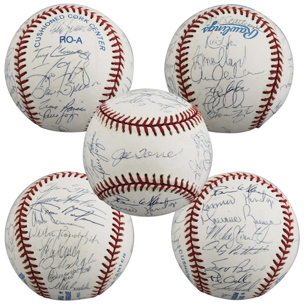This Autographed 1998 World Series Logo oml baseball has been Personally Signed by HOF'ers Joe Torre, Mariano Rivera, Tim Raines, Notables: Darren Holmes, Jorge Posada, David Wells, Mke Buddie, Andy Pettitte, Scott Brosius, Homer Bush, Chili Davis, Orlando Hernandez, Ricky Ledee, Graeme Lloyde, Ramiro Mendoza, Jeff Nelson, Shane Spencer, Mike Stanton, Luis Sojo, Willie Randolph, Don Zimmer Hideki Irabu, Tony Cleminger, Chris Chabliss, Mell Stottlemyre, Tino Martinez & one other (Unknown). The Bernie Williams and Paul O'Neill signatures have been deemed clubhouse versions. of the New York Yankees. This item is 100% Authentic to include a Certificate of Authenticity (COA) / hologram by Beckett Authentication Services. The authenticity can be verified on Beckett Authentication Services website.