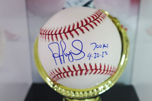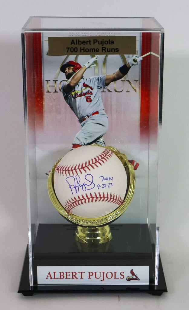 Own a piece of baseball history with this Albert Pujols St. Louis Cardinals 700th home run ball. This authentic baseball features a special inscription commemorating Pujols' milestone achievement on September 23, 2022. Each baseball comes with a custom case for display and a certificate of authenticity, ensuring its legitimacy and value. Whether you're a die-hard Cardinals fan or a collector of baseball memorabilia, this 700th home run ball is a must-have addition to your collection. Celebrate the greatness of Albert Pujols and the St. Louis Cardinals with this unique piece of sports history!Fanatics Authentics and MLB COA