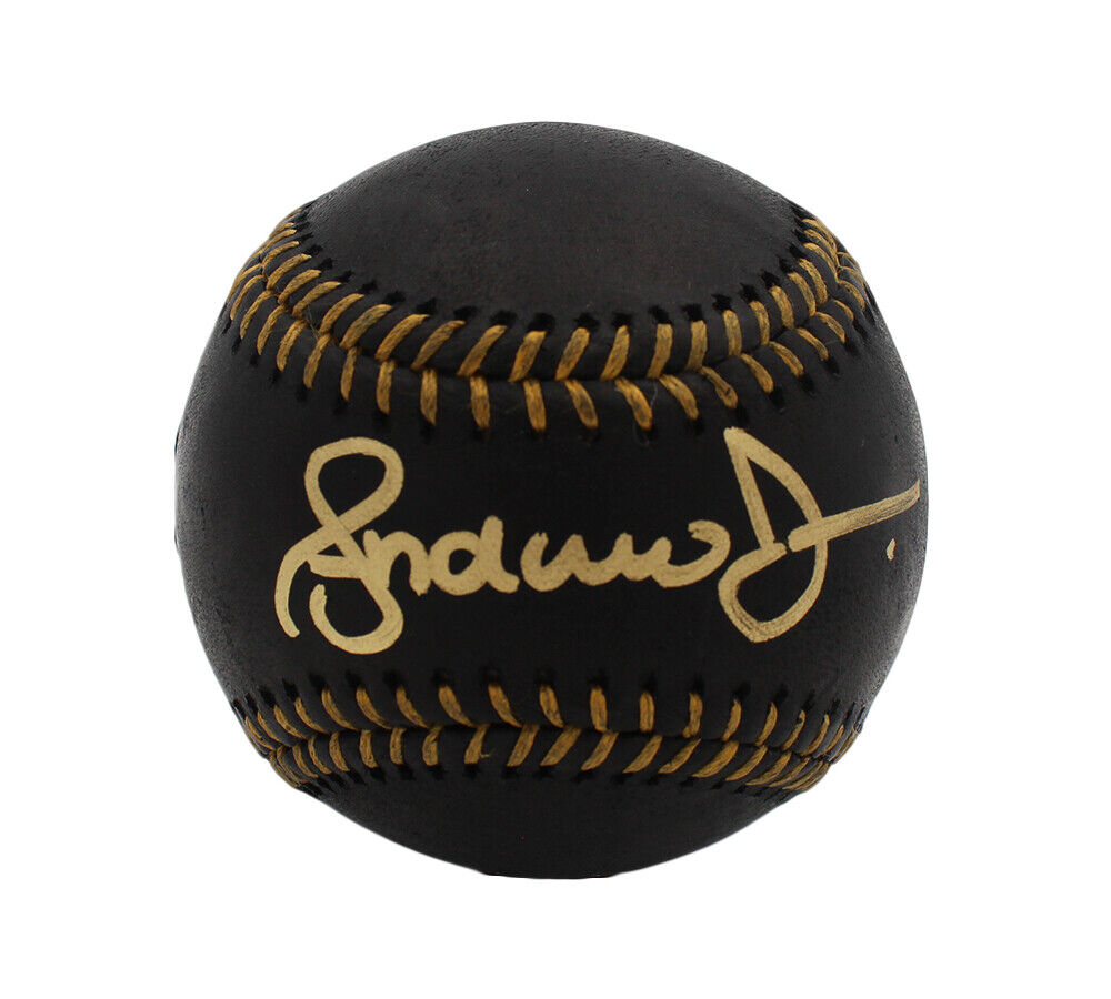 An Atlanta Braves Rawlings Official Major League Black MLB Baseball hand signed by Andruw Jones. The item and signature are in excellent condition. Andruw is a 5x All Star, 10x Gold Glove Award Winner, and a truly memorable Atlanta Braves alumni. AUTHENTICATION: The item features a Certificate of Authenticity - Serial Numbered and Databased Hologram - Picture of Andruw from the Signing