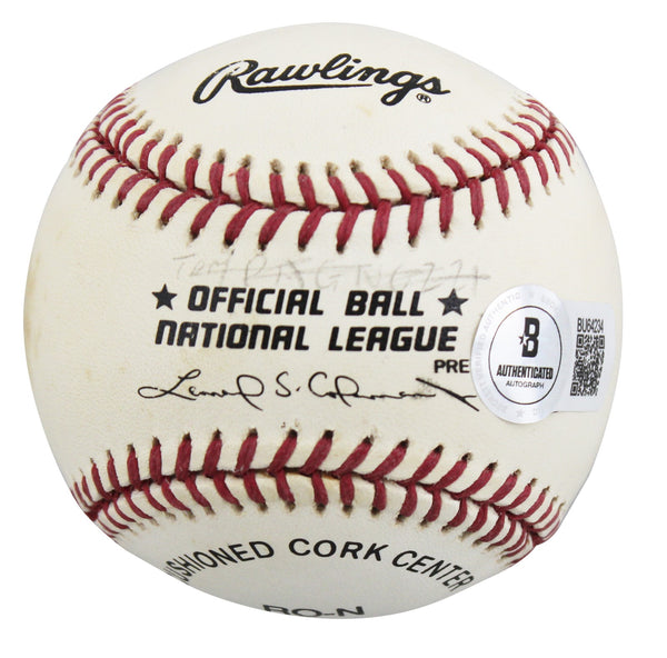 This Autographed Leonard S. Coleman Jr. Baseball has been Personally Signed by Tim Salmon of the Los Angeles Angels. This item is 100% Authentic to include a hologram by Beckett Authentication Services. This item will come with an affixed Beckett Authentication Services (BAS) authentication sticker, which includes a scannable QR code to verify authenticity. Please note that Beckett no longer provides serial-numbered COA cards, and the attached BAS sticker will serve as the complete authentication for this item. The authenticity can be verified on Beckett Authentication Services website.