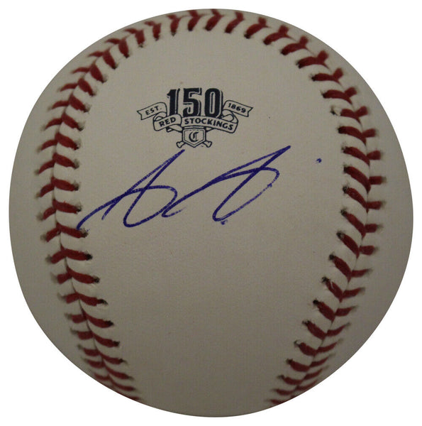 Aristides Aquino Autographed/Signed OML Baseball Reds 150th Anv MLB 36009 The number in the listing title is just an inventory sku for our records and is not the authentication number. This is the exact item that you will receive so please see pictures for condition. Includes a Major League baseball authentic hologram and a certificate of authenticity from Denver Autographs.
