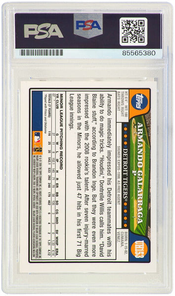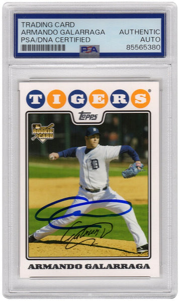Armando Galarraga signed Detroit Tigers 2008 Topps Update rookie baseball card #UH153. The card has been authenticated and encapsulated by PSA/DNA and the number can be verified online.