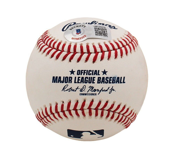 A Pittsburgh Pirates Rawlings Official Major League White MLB Baseball hand signed by Aroldis Chapman. The item and signature are in excellent condition. AUTHENTICATION: The item is accompanied by a Beckett Serial Numbered and Databased Hologram