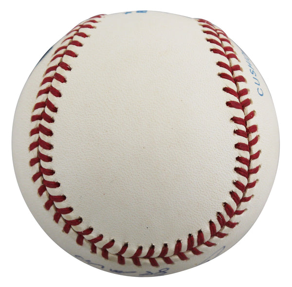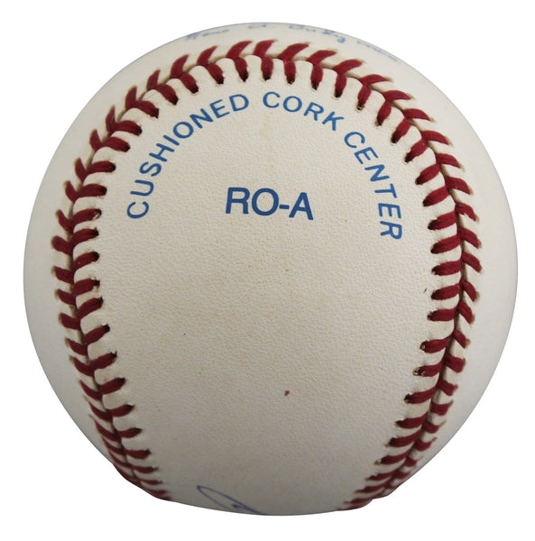 This Autographed Gene Budig Baseball with the inscription of "88 MVP" has been Personally Signed by Jose Canseco of the Oakland Athletics. This item is 100% Authentic to include a hologram by Beckett Authentication Services. This item will come with an affixed Beckett Authentication Services (BAS) authentication sticker, which includes a scannable QR code to verify authenticity. Please note that Beckett no longer provides serial-numbered COA cards, and the attached BAS sticker will serve as the complete authentication for this item. The authenticity can be verified on Beckett Authentication Services website.