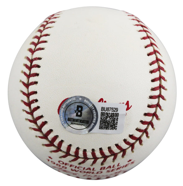 This Autographed 1988 World Series Logo Baseball has been Personally Signed by Jose Canseco of the Oakland Athletics. This item is 100% Authentic to include a hologram by Beckett Authentication Services. This item will come with an affixed Beckett Authentication Services (BAS) authentication sticker, which includes a scannable QR code to verify authenticity. Please note that Beckett no longer provides serial-numbered COA cards, and the attached BAS sticker will serve as the complete authentication for this item. The authenticity can be verified on Beckett Authentication Services website.
