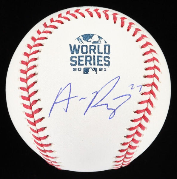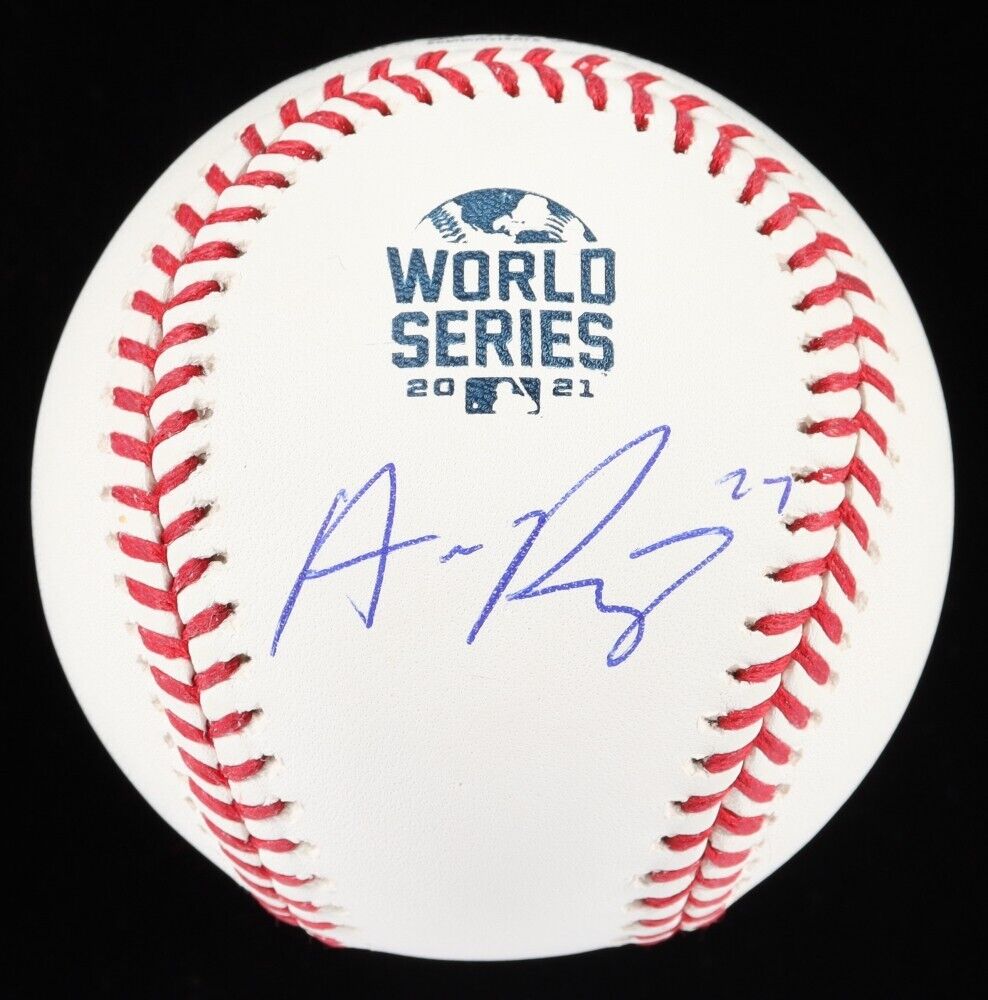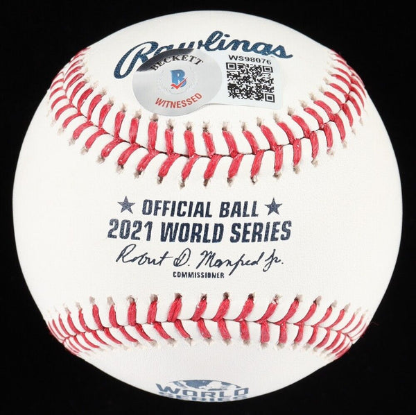 Rawlings Official 2021 World Series Logo Baseball. Hand-signed by Austin Riley (Atlanta Braves).The lot / autograph(s) includes an official Beckett Authentication hologram for authenticity purposes. The signing of this item was witnessed by Beckett.Authentication: Beckett Hologram