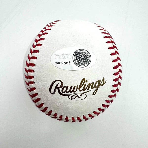Autographed/Signed John Lackey 2016 World Series Rawlings ROML Baseball JSA COA Authentic and comes with third party authentication.