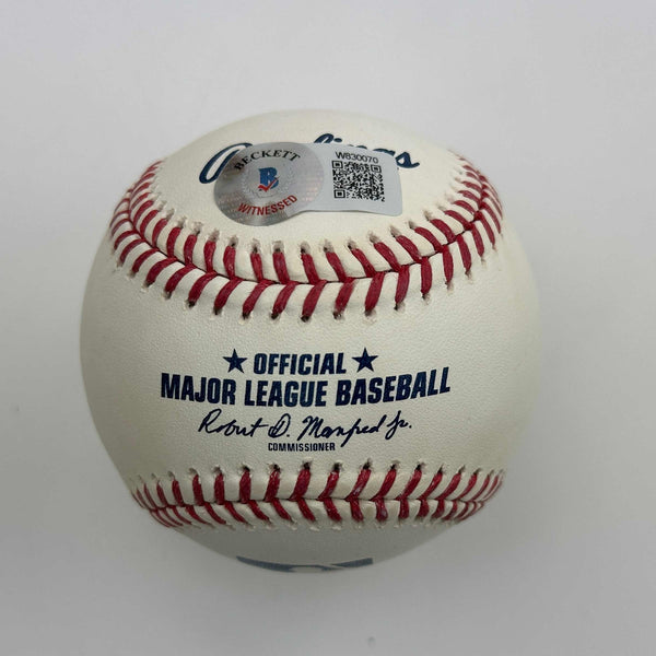 Autographed/Signed Trevor Hoffman Rawlings Baseball ROML Beckett BAS COA Authentic and comes with third party authentication.