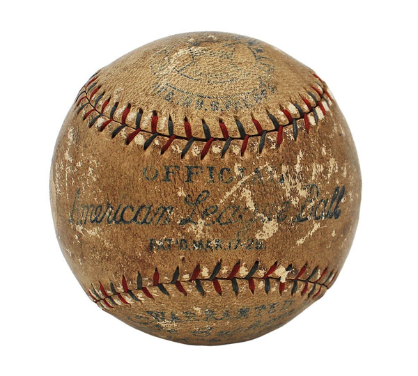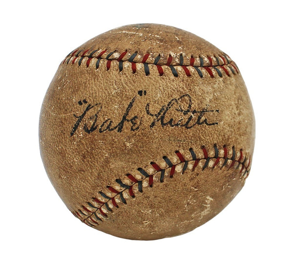 A Vintage Official American League Baseball hand signed by Babe Ruth. The signature is in great condition. The ball has red and blue stiching. Babe Ruth is one of the most sought after signatures in baseball history. He is considered by many to be the greatest baseball player of all time and an iconic figure in baseball history. AUTHENTICATION: The item is accompanied by a JSA Letter of Authenticity.