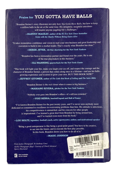 Featured is a Brandon Steiner signed You Gotta Have Balls hardcover book. This book has been hand signed by Steiner and comes with the Beckett hologram and certificate of authenticity. This book would make a great addition to any sports memorabilia collection!. SPECIFICATIONS Autographed By: Brandon Steiner Team: Sport: Authentication: Beckett Grading Services