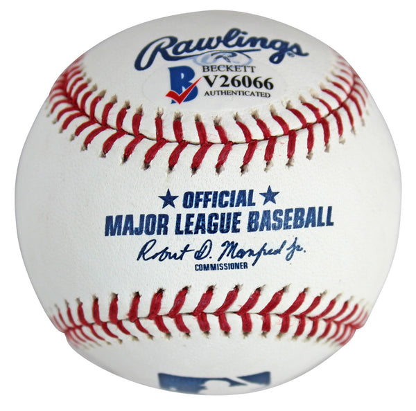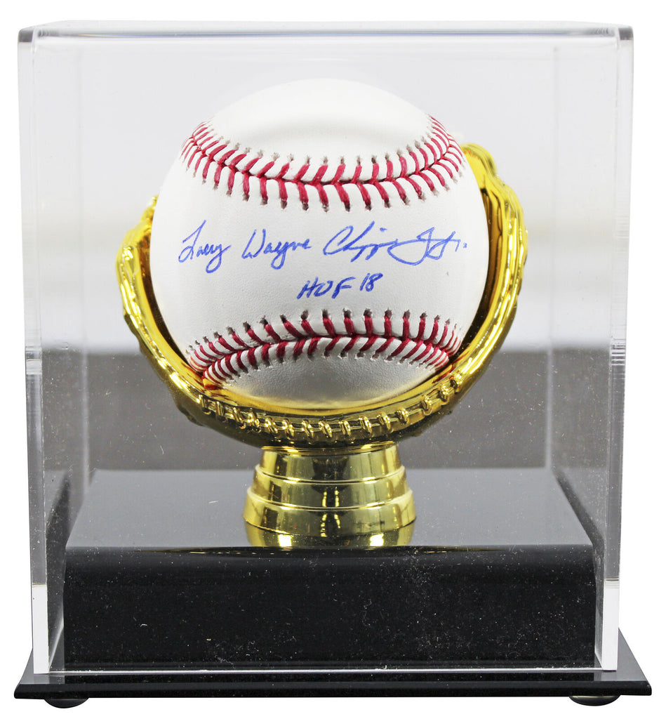 This Autographed OML Baseball Baseball Gold Glove Acrylic Display Case with the inscription of "HOF 18" has been Personally Signed by Larry Wayne Chipper Jones Jr. of the Atlanta Braves. This item is 100% Authentic to include a Certificate of Authenticity (COA) / hologram by Beckett Authentication Services. We have multiples of this same item. While the photographs are representative of this item, the size, placement and strength of the signature may vary. Each item is hand signed, therefore, each autograph is unique.