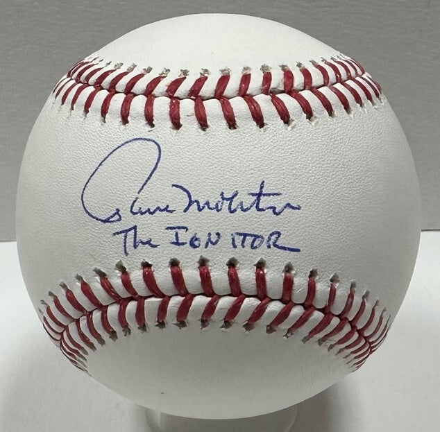 An official MLB baseball autographed by Milwaukee Brewers legend PAUL MOLITOR Signature is in blue ball point pen with the inscription "The Ignitor". Molitor was a member of the 1982 Milwaukee Brewers World Series team and was inducted into the Baseball Hall of Fame in 2004. This would make a great addition to any Twins or Brewers collection! This item was signed at our store during a Public signing with us. It is guaranteed to be 100% authentic and will include James Spence Authentication Sticker and card with matching serial numbers.