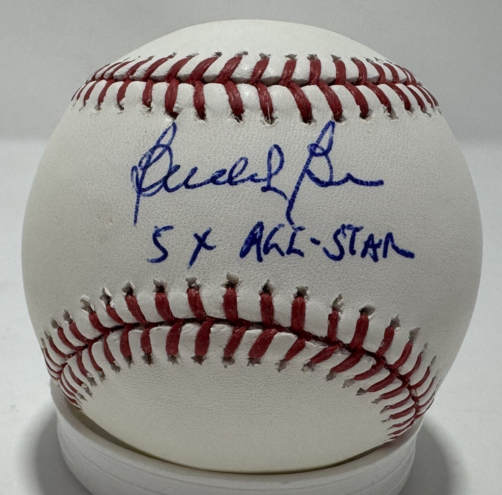 An official Major League Baseball hand signed by former Texas Rangers Infielder BUDDY BELL. The signature is in blue pen with the inscription "5 x All Star". BELL was a member of the Rangers, Indians, Reds and Astros and was a 5 x All Star!. This ball was signed at a private signing with us. This would make a great addition to any Rangers or Indians collection! This item is guaranteed to be 100% authentic and will include a COA from Waukesha Sportscards with matching serial numbered holograms.