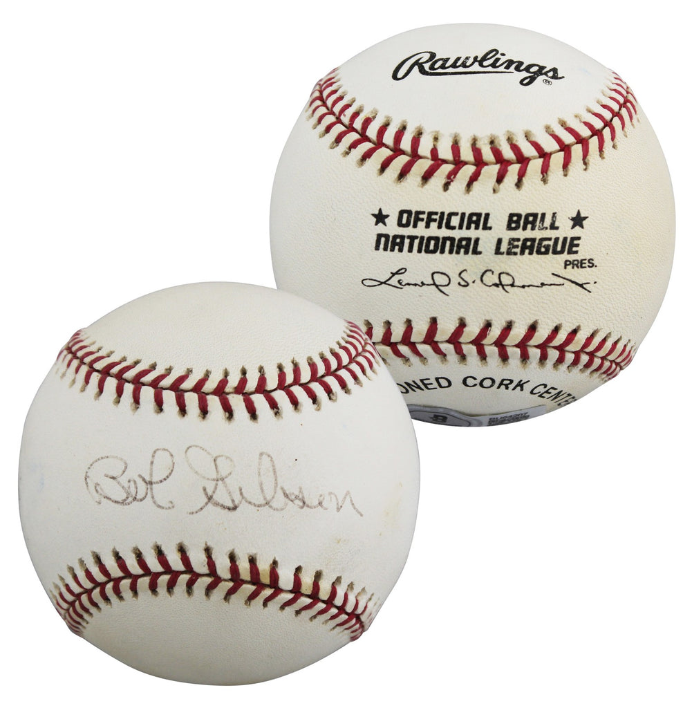 This Autographed Leonard Coleman Baseball has been Personally Signed by Bob Gibson of the St. Louis Cardinals. This item is 100% Authentic to include a hologram by Beckett Authentication Services. This item will come with an affixed Beckett Authentication Services (BAS) authentication sticker, which includes a scannable QR code to verify authenticity. Please note that Beckett no longer provides serial-numbered COA cards, and the attached BAS sticker will serve as the complete authentication for this item. The authenticity can be verified on Beckett Authentication Services website.
