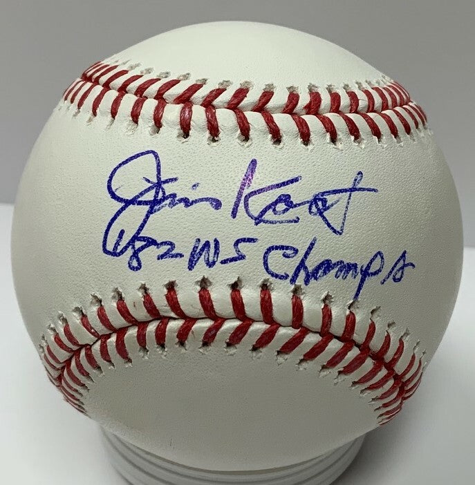 An official Major League Manfred commish Baseball hand signed by St. Louis Cardinals Hall of Famer JIM KAAT. The signature is in blue ink pen with the inscription "'82 WS Champs" . This baseball was signed at a private signing with us. This would make a great addition to any Kaat or Cardinals collection! This item is guaranteed to be 100% authentic and will include a COA from JSA (James Spence Authentication) with matching serial numbers.