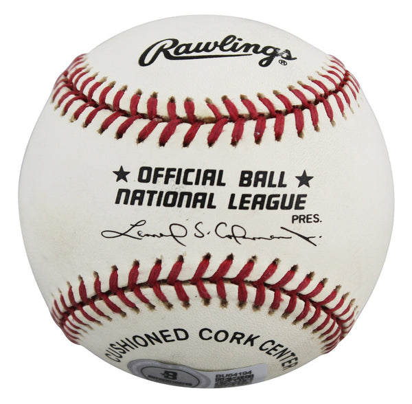 This Autographed Leonard Coleman Baseball has been Personally Signed by Lou Brock of the St. Louis Cardinals. This item is 100% Authentic to include a hologram by Beckett Authentication Services. This item will come with an affixed Beckett Authentication Services (BAS) authentication sticker, which includes a scannable QR code to verify authenticity. Please note that Beckett no longer provides serial-numbered COA cards, and the attached BAS sticker will serve as the complete authentication for this item. The authenticity can be verified on Beckett Authentication Services website.
