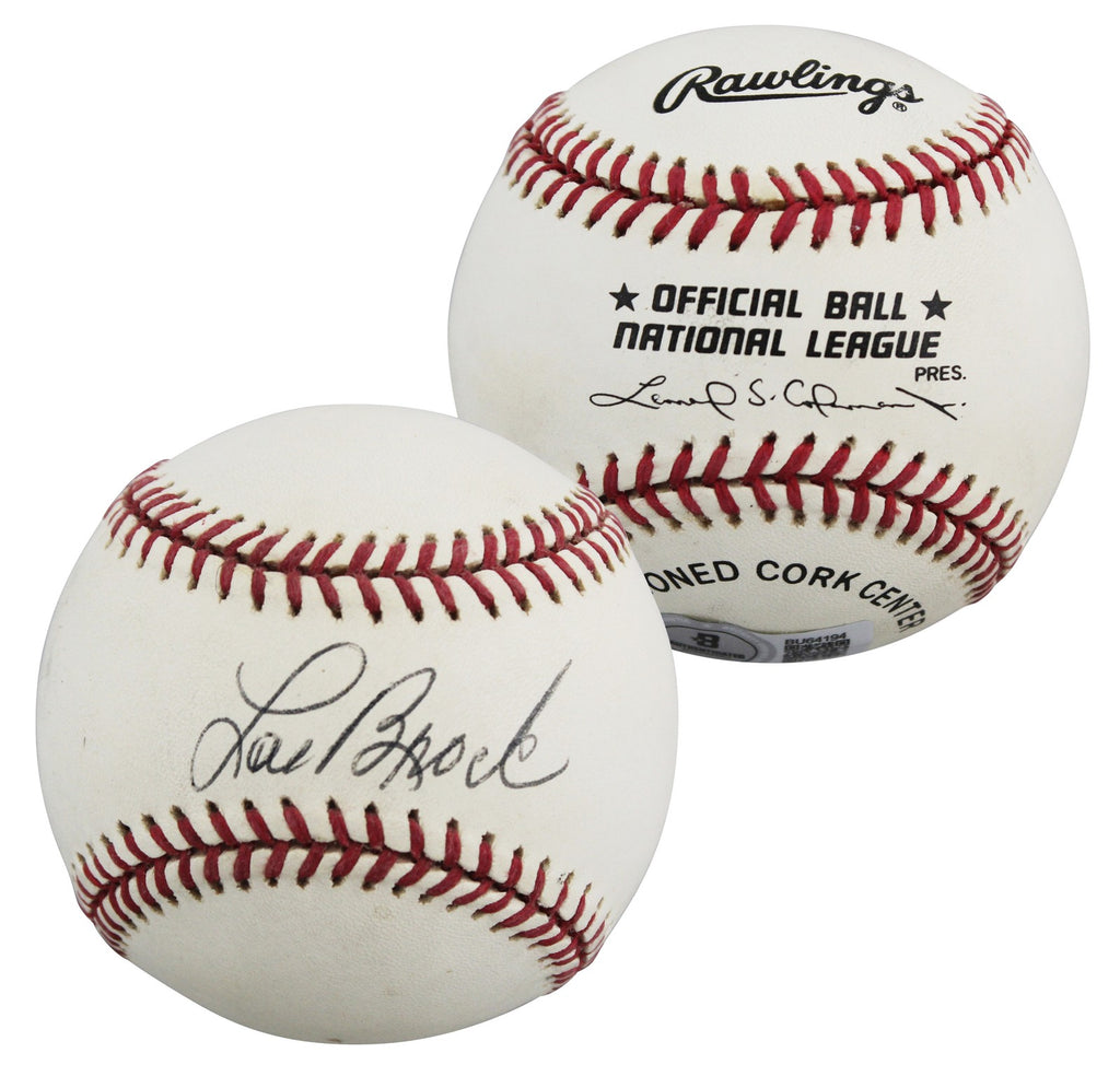 Cardinals Lou Brock Authentic Signed Leonard Coleman ONL Baseball BAS #BU64194