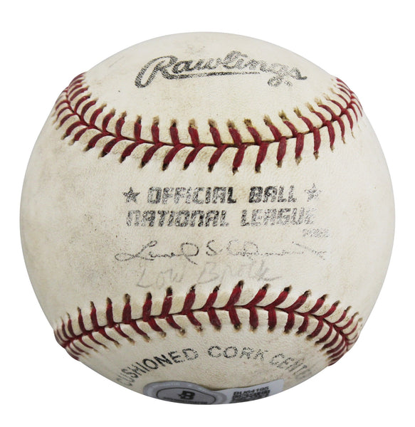 This Autographed Leonard Coleman Baseball has been Personally Signed by Lou Brock of the St. Louis Cardinals. This item is 100% Authentic to include a hologram by Beckett Authentication Services. This item will come with an affixed Beckett Authentication Services (BAS) authentication sticker, which includes a scannable QR code to verify authenticity. Please note that Beckett no longer provides serial-numbered COA cards, and the attached BAS sticker will serve as the complete authentication for this item. The authenticity can be verified on Beckett Authentication Services website.