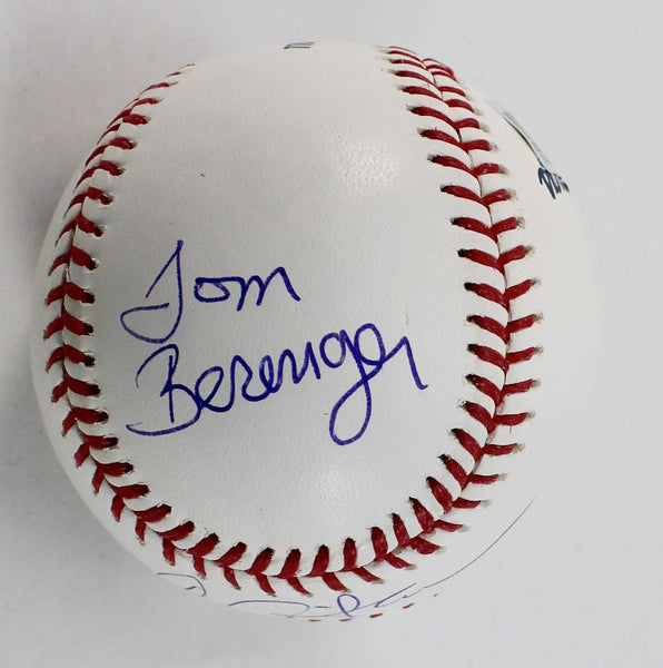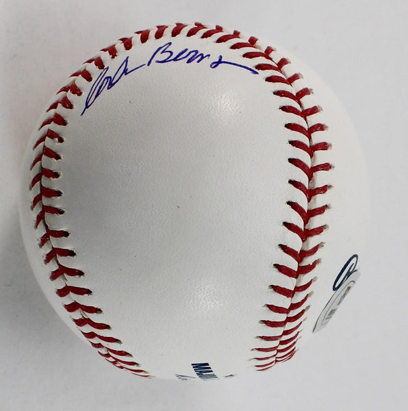 This autographed baseball has been personally hand-signed by Charlie Sheen (Ricky "Wild Thing" Vaughn), Corbin Bernsen (Roger Dorn), & Tom Berenger (Jake Taylor) from the Major League movie franchise.These autographs are certified by Beckett Authentication Services (BAS) Witness Certification. That means that a Beckett representative was present when this item was signed. It comes with the numbered authentication scannable hologram with a QR code card that verifies the authentication on the Beckett website.