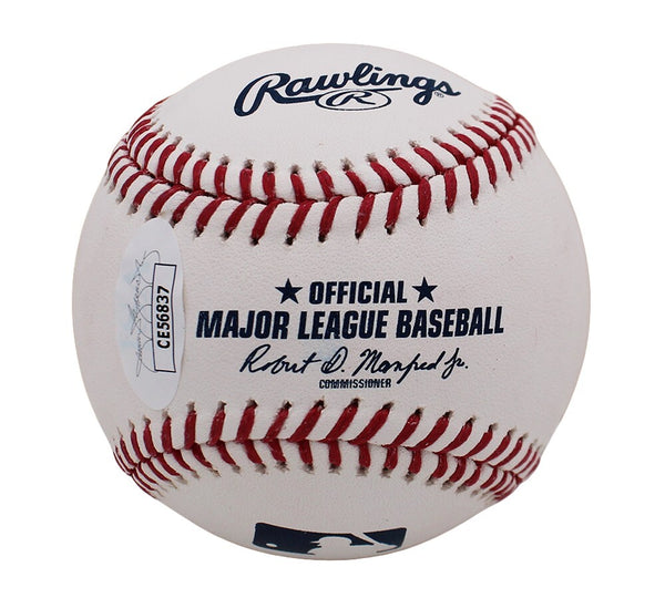 A Major League Rawlings Official Major League White Baseball hand signed by Charlie Sheen. The item and signature are in excellent condition. Charlie Sheen is an American actor, who has appeared in shows like The Rookie, The Arrival, Spin City, and Major League. Charlie plays the character Ricky Vaughn In the 1989 Movie "Major League". AUTHENTICATION: The item is accompanied by a JSA Certificate of Authenticity - JSA Serial Numbered Hologram -