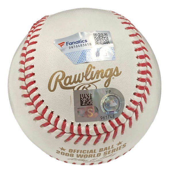 Featured is a Chase Utley signed Philadelphia Phillies official 2008 World Series baseball. This ball has been hand signed by Utley and comes with the Fanatics hologram and certificate of authenticity. Included with this ball is a glass display case that features a cherry wood base. This ball would make a great addition to any sports memorabilia collection!. SPECIFICATIONS Autographed By: Chase Utley Team: Philadelphia Phillies Sport: Baseball Authentication: Fanatics Authentic