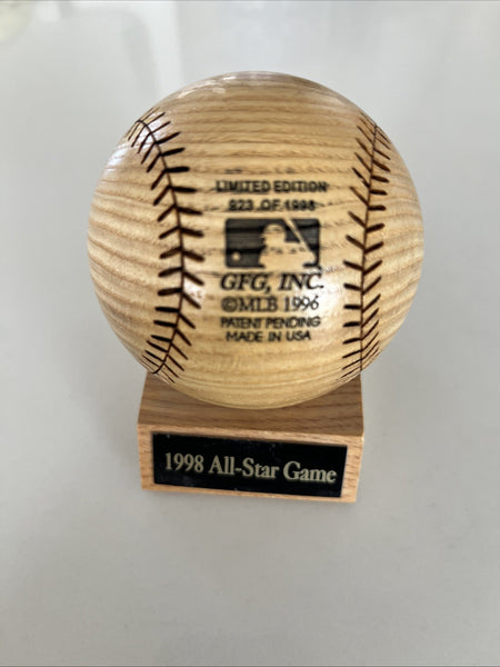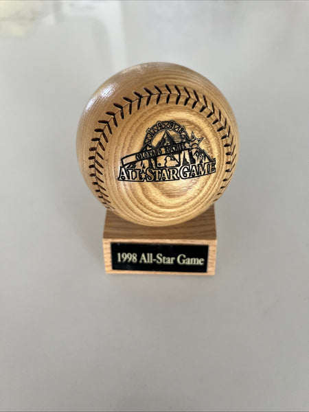 Own a piece of baseball history with this limited edition wooden baseball from Coors Field's 1998 All-Star game. This original ball is perfect for any fan of the sport, and while it doesn't come with an autograph, it's still a valuable addition to any collection. This ball is specifically designed for display purposes, and is sure to be a conversation starter in any sports room or man cave. Don't miss out on this unique piece of memorabilia.