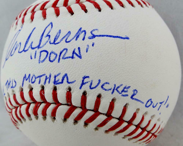 Corbin Bernsen Autographed Rawlings OML Baseball "Dorn" & STMFO - JSA W Auth This is a Corbin Bernsen hand autographed Rawlings Official Game Ball Major League Baseball and inscribed with "Dorn" and "Strike This Mother F***er Out". This item has a James Spence Witnessed Authentication, which comes with a numbered sticker and a matching JSA certificate of authenticity. You can view this item on the SpenceLOA website. It was signed either at a public autograph appearance or a private signing. This is a stock photo of the item. Although you may not receive this exact item, the item you receive is virtually identical, brand new, and in great shape.