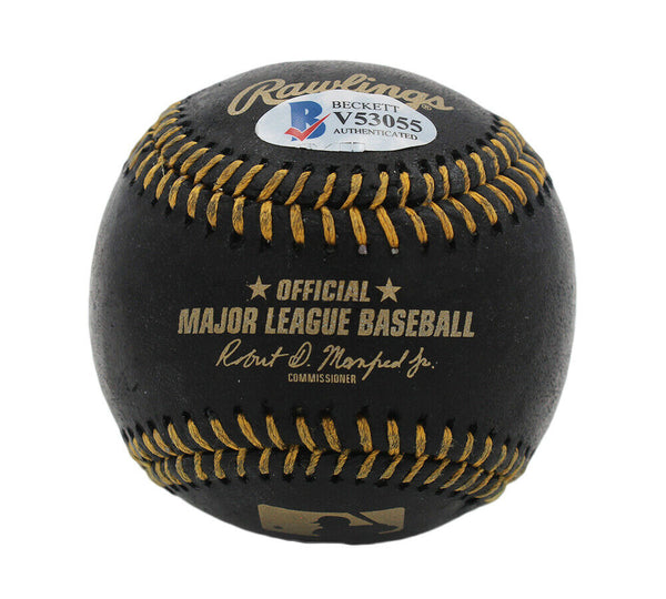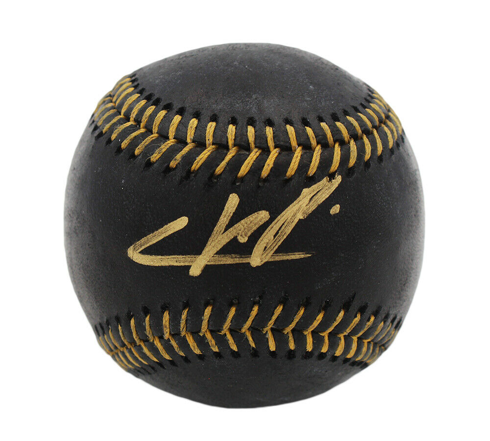 An Atlanta Braves Rawlings Official Major League Black MLB Baseball hand signed by Cristian Pache. The item and signature are in excellent condition. Cristian is a baseball outfielder for the Braves. He was called up to the major league level in 2020. His first major league hit was a single. AUTHENTICATION: The item features a Beckett Certificate of Authenticity - Beckett Serial Numbered and Databased Hologram