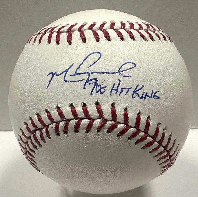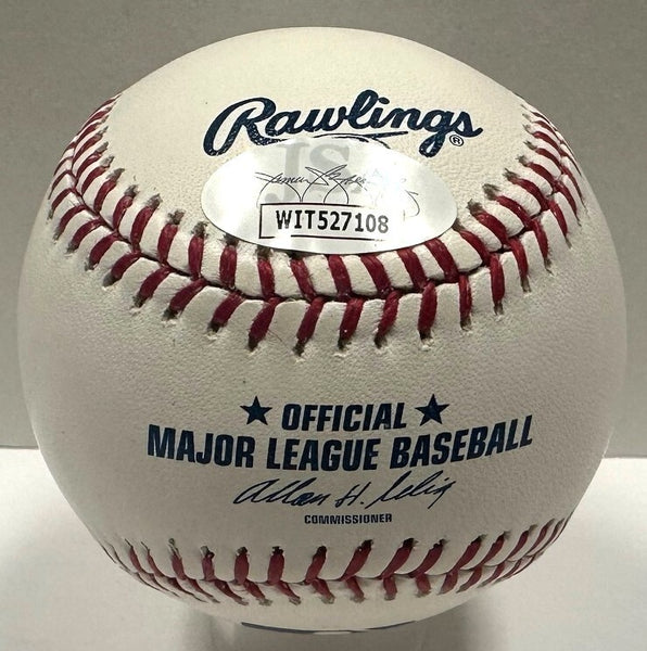 An official Selig MLB Baseball hand signed of former Arizona Diamondbacks and Chicago Cubs Legend MARK GRACE. The signature is in blue ink pen and contains the inscription "90's Hit King". This baseball was signed at a private signing with us. This would make a great addition to any Cubs or Diamondbacks collection! This item is guaranteed to be 100% authentic and will include a COA from JSA authentication.