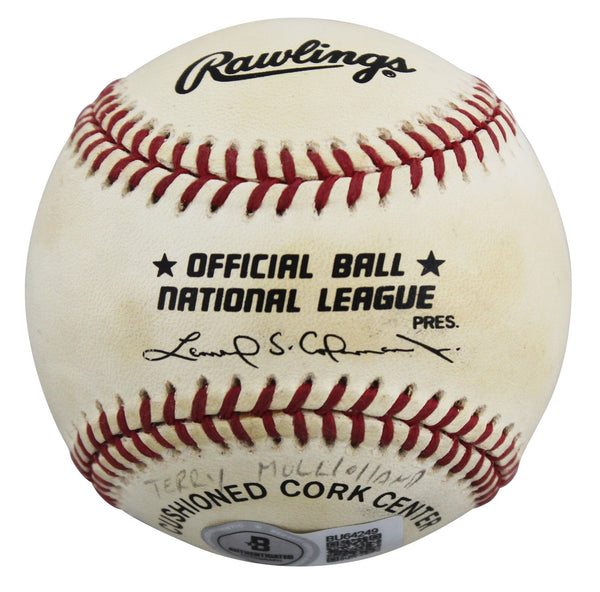 This Autographed Leonard Coleman Baseball has been Personally Signed by Terry Mulholland of the Chicago Cubs. This item is 100% Authentic to include a hologram by Beckett Authentication Services. This item will come with an affixed Beckett Authentication Services (BAS) authentication sticker, which includes a scannable QR code to verify authenticity. Please note that Beckett no longer provides serial-numbered COA cards, and the attached BAS sticker will serve as the complete authentication for this item. The authenticity can be verified on Beckett Authentication Services website.