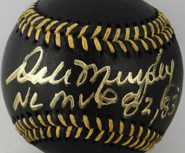 Dale Murphy Autographed Rawlings OML Black Baseball w/ NL MVP-Beckett This is a Hand Autograph of Dale Murphy on a Rawlings Official Game Ball Major League Black Baseball and inscribed with NL MVP 82, 83. This item has a Beckett Authentication, which comes with a Beckett #'ed Sticker and a Matching Beckett Certificate of Authenticity. You can view this item on the Beckett website and it shows when and where the item was signed. It was signed either at a public autograph appearance or a private signing. This is a stock photo of the item. Although you may not receive this exact item, the item you receive is virtually identical and brand new in great shape.