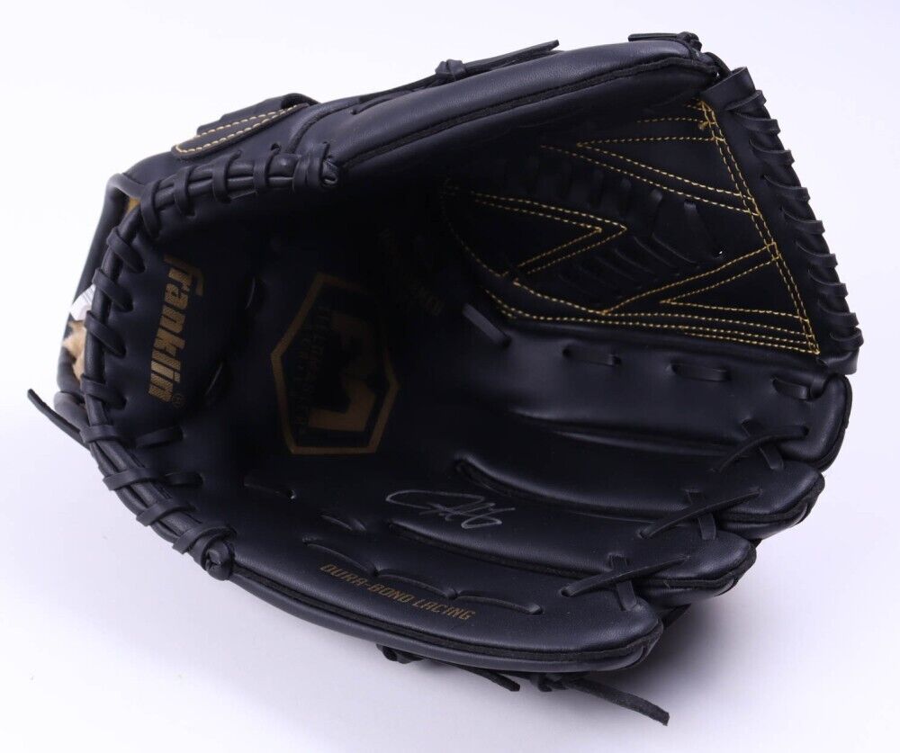 Franklin Youth baseball glove. Hand-signed by Derrek Lee (Chicago Cubs).The autograph(s) includes an official Schwartz Sports Hologram and matching COA for authenticity purposes.Authentication: Schwartz Sports COA