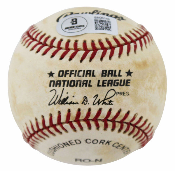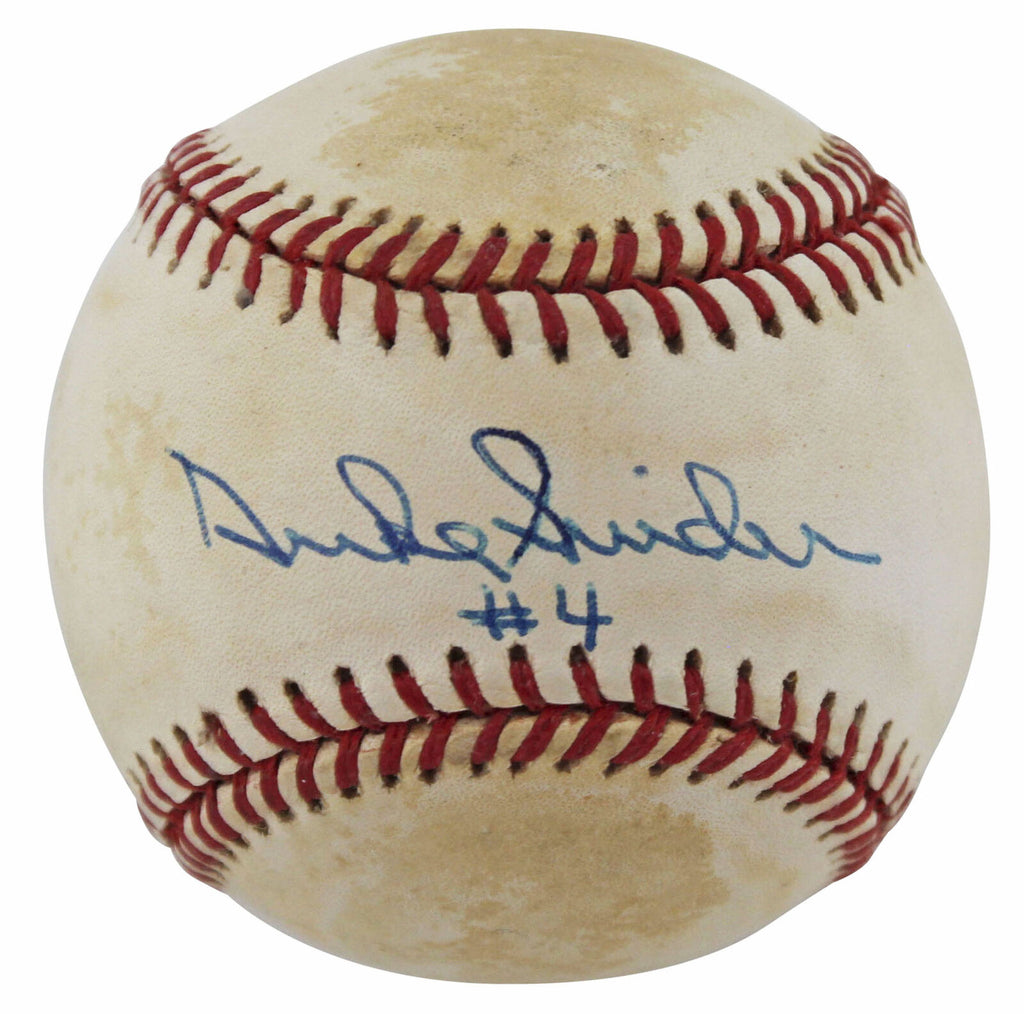 This Autographed William White Onl Baseball has been Personally Signed by Duke Snider of the Los Angeles Dodgers. This item is 100% Authentic to include a hologram by Beckett Authentication Services. This item will come with an affixed Beckett Authentication Services (BAS) authentication sticker, which includes a scannable QR code to verify authenticity. Please note that Beckett no longer provides serial-numbered COA cards, and the attached BAS sticker will serve as the complete authentication for this item. The authenticity can be verified on Beckett Authentication Services website.