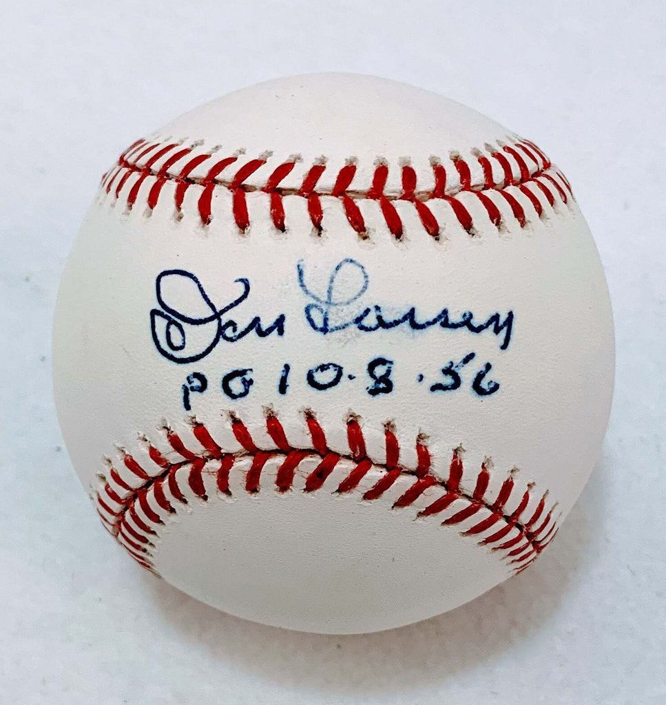 Autographed MLB baseball from Don Larsen, a legendary Yankees pitcher. The ball is also inscribed "PG 10-8-56," signifying the date Larsen pitched his most notable performance, the only perfect game (as well as the only no-hitter) in the history of the World Series. His signature is partly smudged. Additionally, this hand-signed item comes with a Certificate of Authenticity from Latitude Sports Marketing.