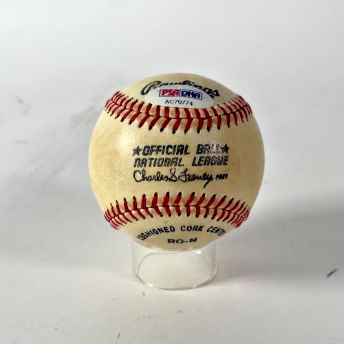 Authentic Don Newcombe Signed Baseball - Triple Crown Achievement Inscription Own an extraordinary piece of baseball history with this authentic Don Newcombe autographed baseball featuring the rare "ROY - 49-Cy Young - MVP" inscription. This premium collectible celebrates Newcombe's unprecedented Triple Crown of individual baseball honors - the only pitcher in MLB history to achieve this remarkable feat. Product Highlights: Authentic Signature: Hand-signed by Brooklyn Dodgers Hall of Fame pitcher Don Newcombe Historic Triple Crown Inscription: "ROY - 49-Cy Young - MVP" commemorating his unique achievement PSA Authentication: Certificate of Authenticity #AC79774 guarantees genuineness Investment Grade: Museum-quality collectible with documented provenance Official Baseball: Premium quality ball perfect for display or collection Don Newcombe's Unprecedented Achievement: Don Newcombe remains the only pitcher in baseball history to win the Rookie of the Year (1949), Cy Young Award (1956), and National League MVP Award (1956). His dominant career with the Brooklyn Dodgers included a 149-90 record and crucial contributions to the team's 1955 World Series championship. Why This Baseball is Special: This inscription captures all three of Newcombe's major individual awards in one piece, making it exceptionally rare among baseball memorabilia. The PSA certification with specific certificate number AC79774 provides ironclad authentication and investment protection. Perfect for: Serious baseball collectors, Dodgers enthusiasts, sports memorabilia investors, and anyone who appreciates authentic pieces of baseball's golden era. Includes PSA Certificate of Authenticity #AC79774. Display case sold separately. This is a one-of-a-kind collectible celebrating baseball's most unique individual achievement.