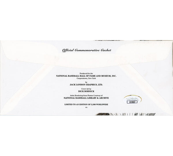 A National Baseball Hall of Fame & Museum Induction Cachet Envelope hand signed by Earl Weaver and Jim Bunning. The signature and item are in excellent condition. The envelope measures 10.5 cm x 24 cm. AUTHENTICATION: The item is accompanied by a JSA Certificate of Authenticity - JSA Serial Numbered and Databased Hologram