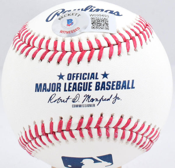 Edgar Martinez Autographed Rawlings OML Baseball w/HOF - Beckett W Hologram *Blue This is a hand autographed Baseball of Edgar Martinez. This is a Rawlings Official Game Ball Major League Baseball. Inscribed HOF. This item has a Beckett Witness Authentication, which comes with a numbered hologram and a QR code for verification. This item can be viewed on the Beckett website, it shows when and where the item was signed. It was signed either at a public autograph appearance or a private signing. This is a stock photo of the item. Although you may not receive this exact item, the item you receive is virtually identical and brand new in great shape.