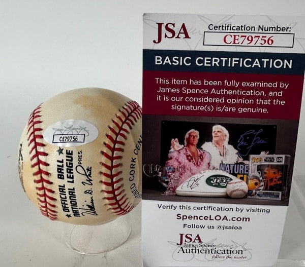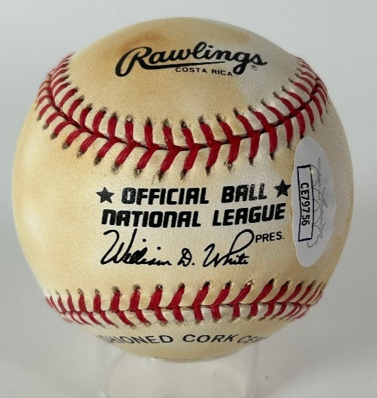 Authentic MLB Memorabilia Add this Eric Young autographed Rawlings baseball to your collection, authenticated by James Spence Authentication (JSA). This officially signed baseball celebrates the career of a dynamic MLB player known for his speed and versatility. About Eric Young Eric Young enjoyed a successful 15-year Major League Baseball career (1992-2006) as a speedy second baseman and outfielder. Known for his base-stealing prowess and leadoff hitting ability, Young played for multiple teams including the Colorado Rockies, Los Angeles Dodgers, Chicago Cubs, Milwaukee Brewers, San Francisco Giants, Texas Rangers, and San Diego Padres. He was a key member of the 1995 Colorado Rockies playoff team and finished his career with over 460 stolen bases. Product Features: Official Rawlings baseball with authentic Eric Young signature James Spence Authentication (JSA) Certificate of Authenticity included JSA tamper-evident hologram sticker for verification Professional-grade baseball in excellent condition Perfect for display or collection Ideal gift for MLB fans and baseball collectors Great addition to Colorado Rockies or Dodgers collections JSA Authentication Guarantee James Spence Authentication (JSA) is one of the most trusted names in autograph authentication. Each signed baseball includes a matching certificate and hologram, providing ironclad proof of authenticity and protecting your investment. Perfect For: Baseball memorabilia collectors Colorado Rockies fans Los Angeles Dodgers enthusiasts 1990s baseball nostalgia collectors Display cases and shadow boxes This is an officially authenticated piece of baseball memorabilia perfect for any MLB fan or collector.
