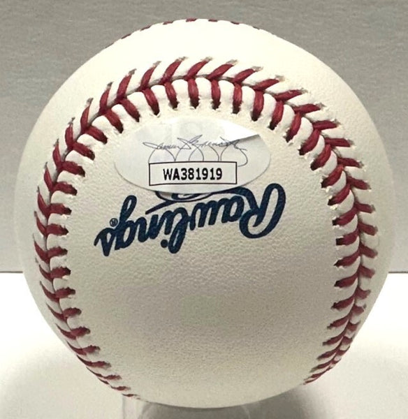 An official MLB Hall of Fame LOGO baseball autographed by Montreal Expos Hall of Famer VLADIMIR GUERRERO. Signature is in blue ball point pen with the inscription "HOF 18". This would make a great addition to any GUERRERO collection! This item was signed at our store during a private signing with us. It is guaranteed to be 100% authentic and will include a COA from JSA Authentication.