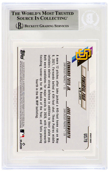 Fernando Tatis Jr. signed San Diego Padres 2021 Topps Update baseball trading card #US79. The card has been authenticated and encapsulated by Beckett Authentic and the authentication number can be verified online.