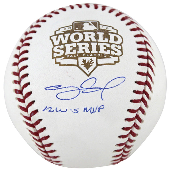 This Autographed 2012 World Series Logo Oml Baseball with the inscription of "12 WS MVP" has been Personally Signed by Pablo Sandoval of the San Francisco Giants. This item is 100% Authentic to include a hologram by Beckett Authentication Services. This item will come with an affixed Beckett Authentication Services (BAS) authentication sticker, which includes a scannable QR code to verify authenticity. Please note that Beckett no longer provides serial-numbered COA cards, and the attached BAS sticker will serve as the complete authentication for this item. This is a BAS Witnessed Protection Program item which means a Beckett Authentication Service representative was present when this item was being signed. We conducted an autograph signing with Pablo Sandoval where multiples of the same item were signed. While the photographs are representative of this item, the size, placement and strength of the signature may vary. Each item is hand signed, therefore, each autograph is unique. This item can be verified through BAS Witnessed.